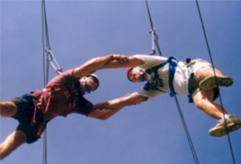 Feladat: 6-10 méter magasságban kifeszített drótkötélpályán való végighaladás.